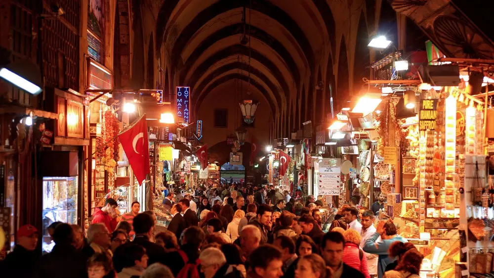 Гранд Базар, Ыстамбұл, Түркия: әлемдегі ірі әрі ежелгі жабық базарлардың бірі көпшіліктің ықыласына ие болған. "Ыстамбұлдың үлкен базары көптеген шағын дүкендерден тұрады, онда негізінен түркиялық кілемдер, әшекей бұйымдар, керамикалық ыдыстар, антиквариат және басқа да заттар бар", - дейді авторлар. Жыл сайын Гранд базарға 15 миллионға жуық адам барады.