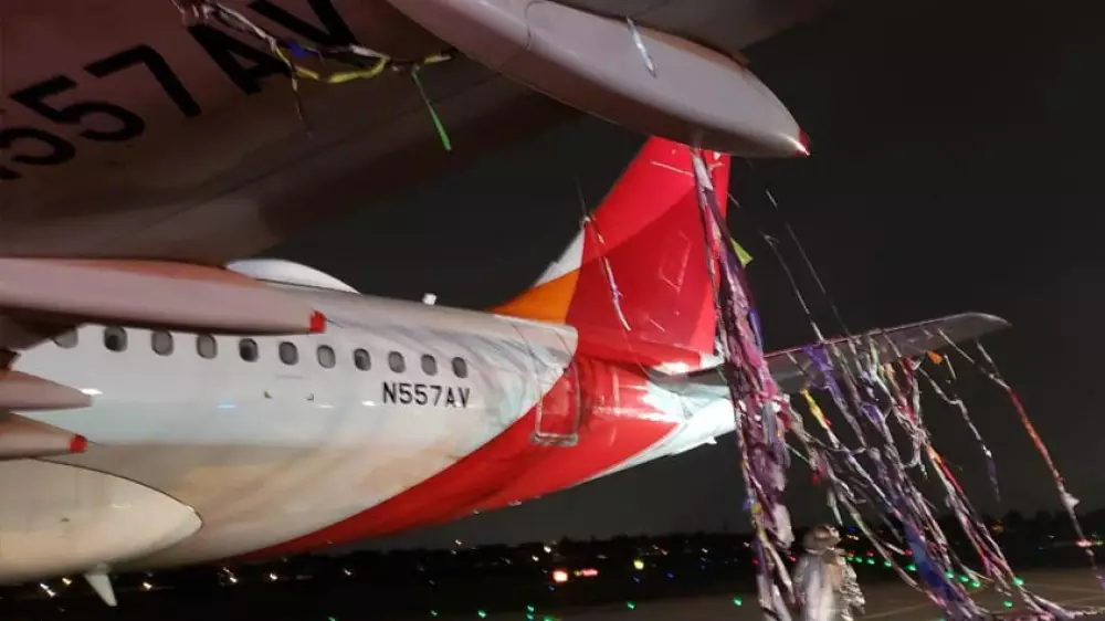 Орландодан (АҚШ) жолға шыққан жолаушылар әуе кемесінің қанаттары, қозғалтқышы және корпустың басқа бөліктері жаңа жылдық безендіру ленталарына оралып қалған.