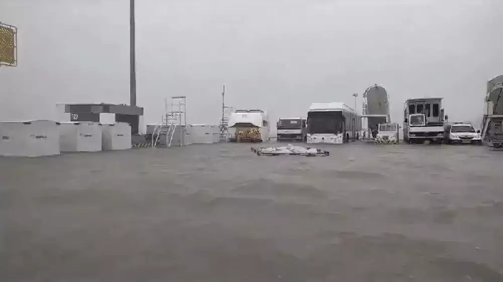 Әлеуметтік желіде тараған видеода, әуежайдың терминалы мен ұшу-қону алаңын су басқанын көруге болады.