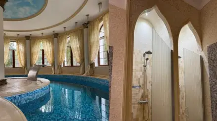 Резиденциядан балалар орталығына бассейн, душ бөлмелері және сауна қалған.