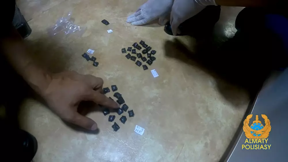 "37 жастағы И. есімді күдікті азамат үш мекенжайға бетбелгі қою барысында ұсталды. Изолентаға оралған есірткі заттары бірден тәркіленді. Сонымен қатар, күдіктінің Толстой көшесіндегі жалдамалы пәтері де тексерілді. Нәтижесінде ас үйдегі сөреден жасыл және ақ түсті ұнтақты заты бар 40 байлам анықталды. Сондай-ақ, залдан қорап табылды, оның ішінде ұнтақты заты бар 331 бума болды. Самалдықтан қызыл, көк, ақ және жасыл түсті түйіршіктер мен ішінде ұнтақ түріндегі заты бар 5 пластик ыдыс табылды. Сараптама байламдар мен ыдыстарға синтетикалық есірткі оралғанын анықтады", – деді Алматы қалалық ПД Есірткі қылмысына қарсы күрес басқармасының бастығы Ерлан Әлмағамбетов.