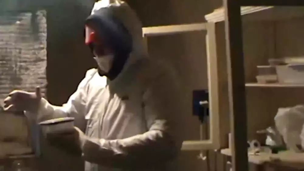 ҰҚТ басшысынан есірткі өндіруге арналған үш килограмнан аса "Альфа-PVP" синтетикалық есірткі, 65 литр прекурсор, колбалар, ыдыстар, қорғаныс костюмдері, респираторлар, ұялы телефондар, дәріханалық таразылар, өндіріс процесі жазылған дәптерлер тәркіленген.