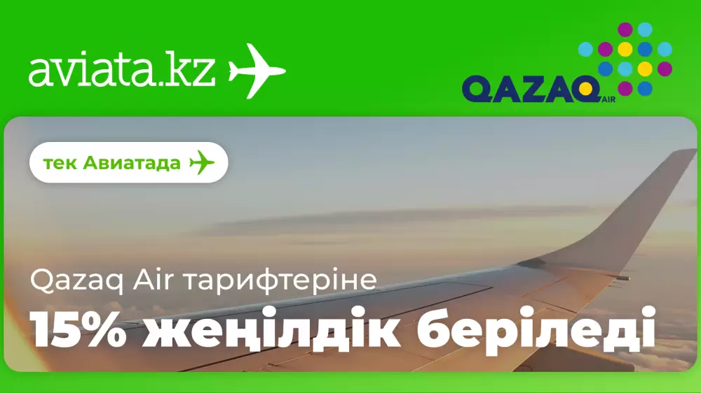25-29 қыркүйек аралығында тек Aviata.kz сайтында Qazaq Air ұшақ билеттерін тарифтен 15% дейін жеңілдікпен сатып ала аласыз. Саяхатты 1 қазаннан бастап жоспарлауға болады.