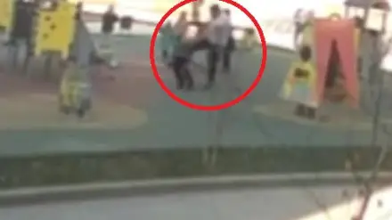 Видеода бір топ баланың бір-біріне зат лақтырып ойнап жүргені көрінеді. Бір сәтте ірі денелі ер адам жүгіріп келіп, балалардың бірін теуіп жібереді. Бала жерге құлап түседі, ал ер адам оқиға орнынан кетіп қалады.