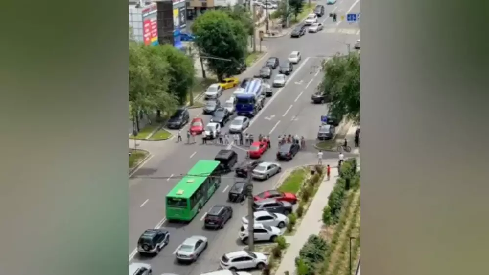 Алматы Полиция департаменті өкілі 11 маусымда бір топ адам Гагарин көшесінің көлік жүретін бөлігін жауып тастағанын айтты.