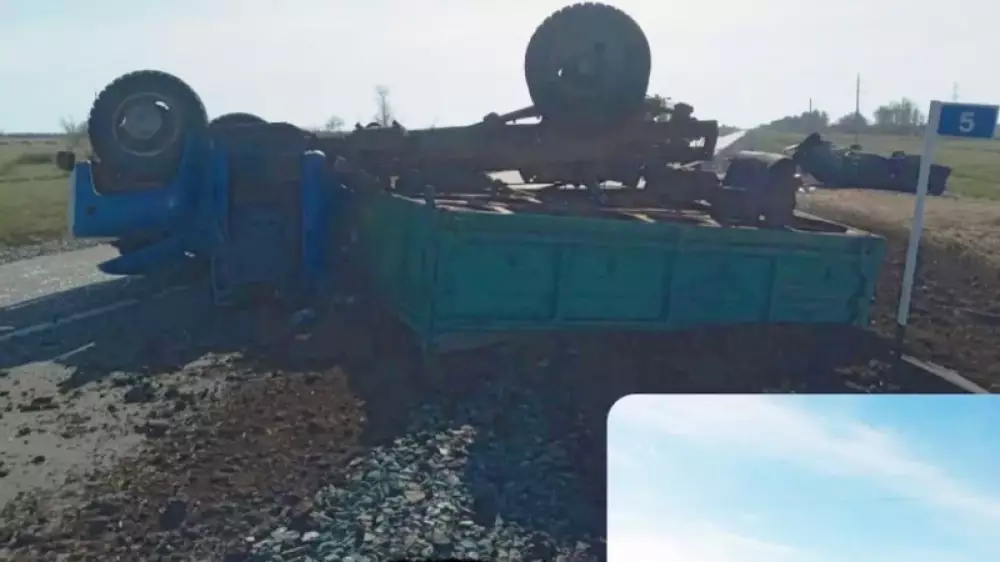 Оқиға орнынан түсірілген сурет Instagram-да жарияланды. Қатты соққыдан жүк көлігі аударылып кеткен, жеңіл көліктің де жағдайы мәз емес, майысып қалған.