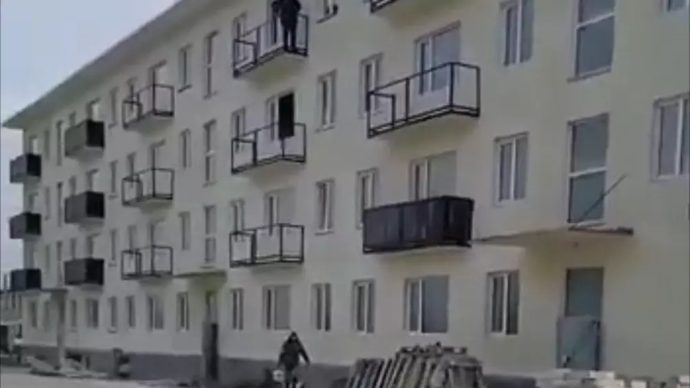Желіде көпқабатты үйдің балкондары көрсетілген видео тарады. Бірақ пәтерден балконға шығатын есік жоқ, онда тек терезелер бар.