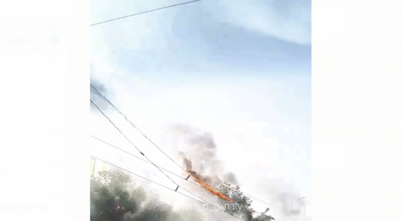 Алматыда өртенген троллейбус сымдары видеоға түсірілді