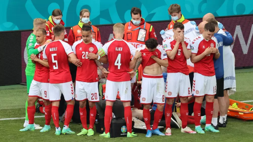 Дания құрамасының футболшысы Кристиан Эриксен EURO-2021 турнирінің топтық кезеңіндегі Финляндияға қарсы матчте есінен танып қалды, - деп хабарлайды Tengrinews.kz тілшісі.