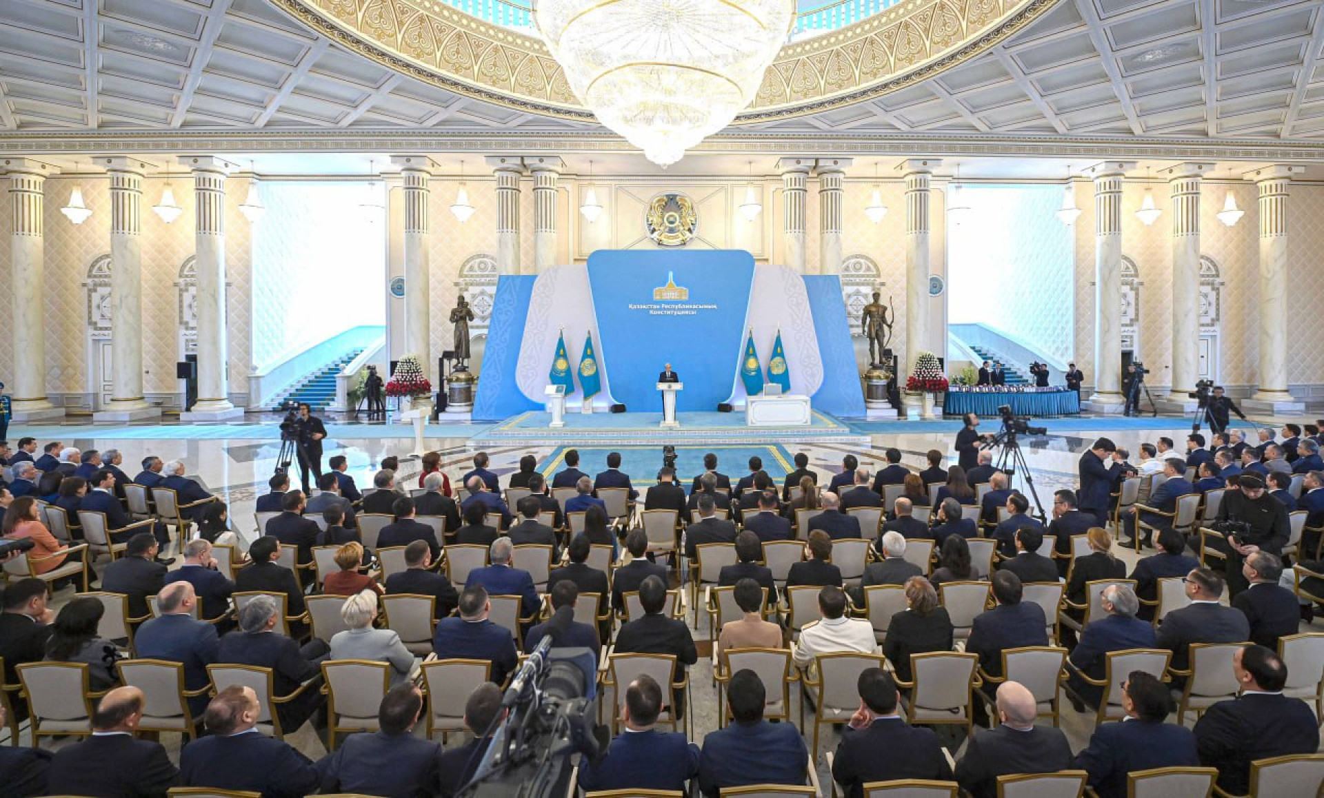 Президент Қасым-Жомарт Тоқаев Конституцияны қабылдауға арналған салтанатты жиынға қатысты, - деп хабарлайды Tengrinews.kz тілшісі Ақордаға сілтеме жасап.