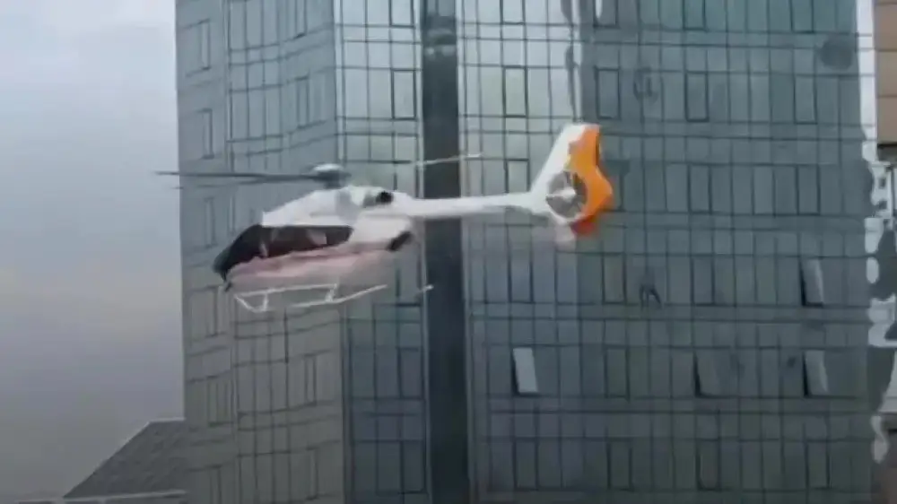 Тағы бір видеода тікұшақтан арқан түскенін көруге болады, сол арқылы ғимараттың төбесінен екі адам көтерілген.