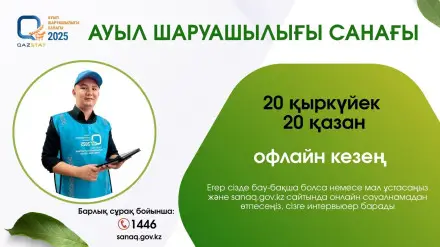 1 тамызда басталған Ауыл шаруашылығы санағы, 20 қазанға дейін жалғасады. Жиналған деректер салаға қатысты мәліметтерді жаңартуға және ауыл шаруашылығын дамытуға арналған шешімдер қабылдауға негіз болады.