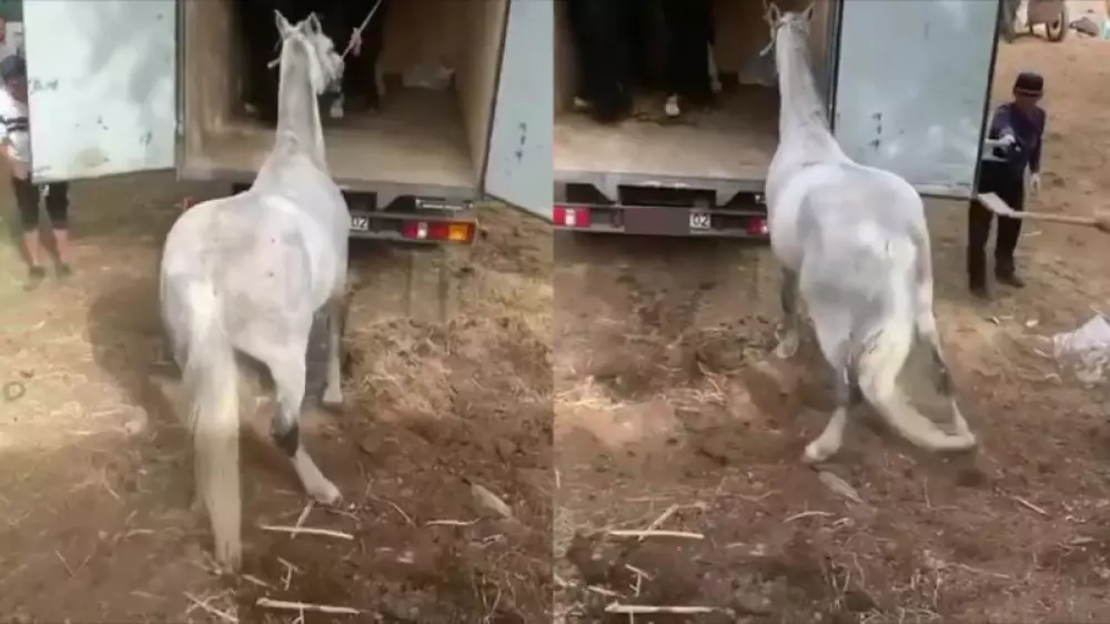Желіде таралған кадрлардан ат клубтарының бірінде ер адамдар айғырды жүк көлігіне кіргізу үшін күрекпен, қамшымен ұрғанын көруге болады.