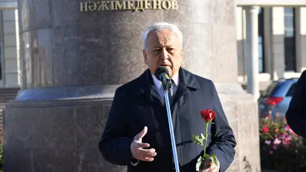 Атырау қаласында көрнекті ақын, Қазақстан Республикасының Мемлекеттік Гимнінің авторы Жұмекен Нәжімеденовтің туғанына 90 жыл толуына орай ескерткішіне гүл шоқтарын қою рәсімі өтті.