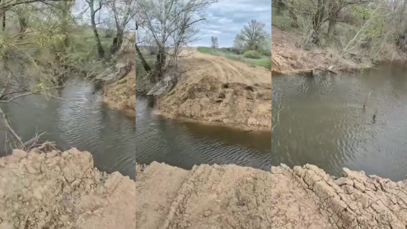 Кадрлардан су ағыны тұрғындар жолды қысқарту үшін пайдаланған үйіндіні толығымен шайып кеткені көрінеді. Видео авторы өткелдің осымен неше мәрте бұзылғанын айтты.