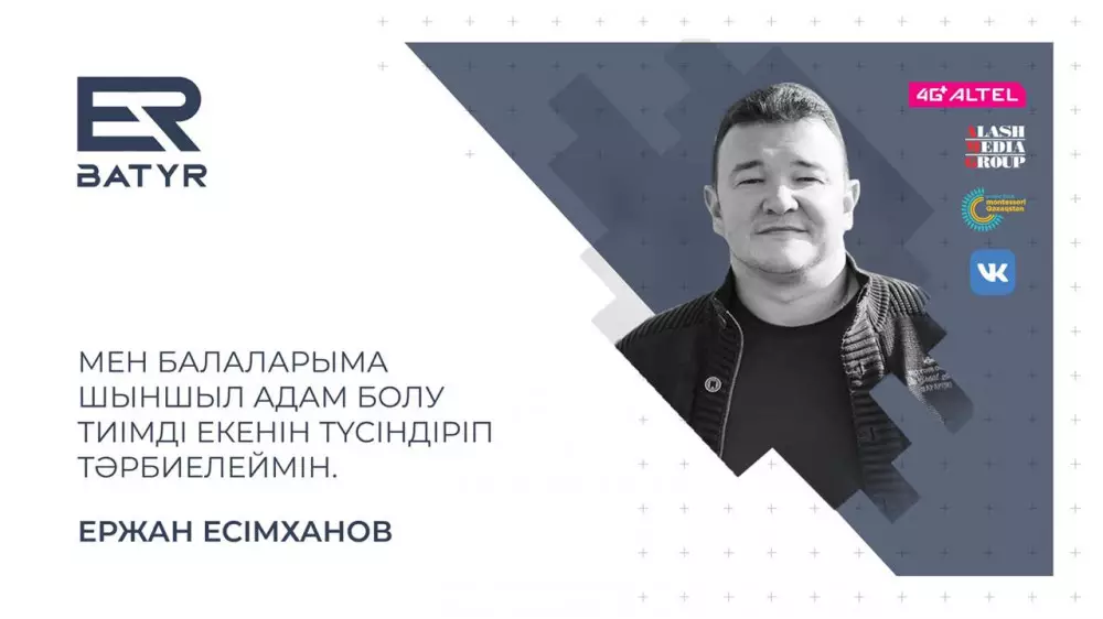 Alash Media Group медиахолдингі Montessori Qazaqstan Public Fund-пен бірігіп ер адамдарға арналған ерлер туралы ER-BATYR жобасын ұсынады. Эфирдің алғашқы қонағы - заңгер, блогер, жүзгіш-марафоншы, Oceanman кітабының авторы Ержан Есімxанов.