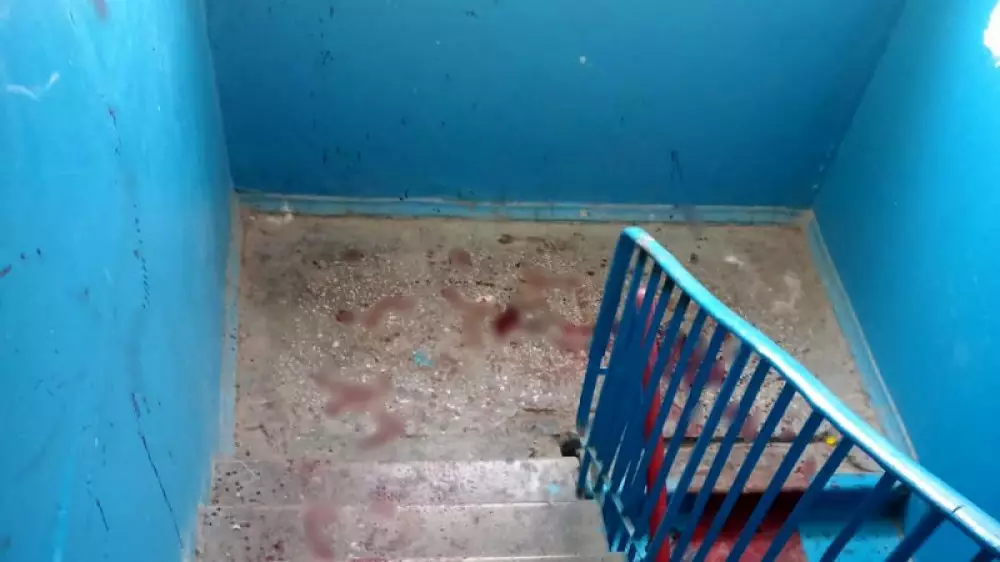 Оқиға орнынан түсірілген кадрларды куәгер басылым редакциясына жолдаған. Суреттерден пәтер, подъез қанға боялғаны көруге болады.
