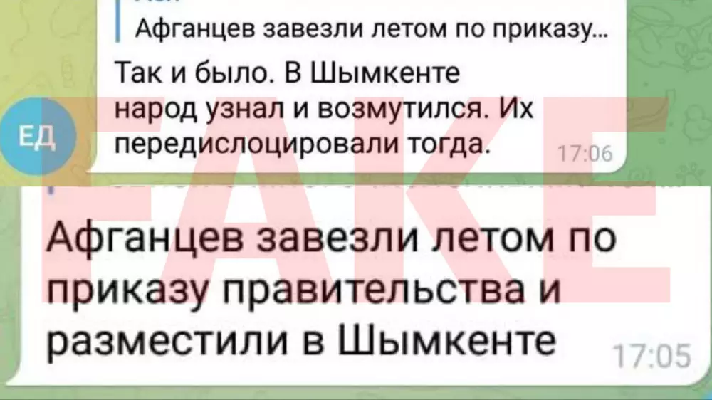 Портал мәліметінше, Telegram мессенджерінде Ауғанстан азаматтары Қазақстанға былтыр жазда Үкімет бұйрығы бойынша кіргізілгені туралы хабарламалар тарап жатыр. Жазбада оларды Шымкентте орналастырғаны жазылған.