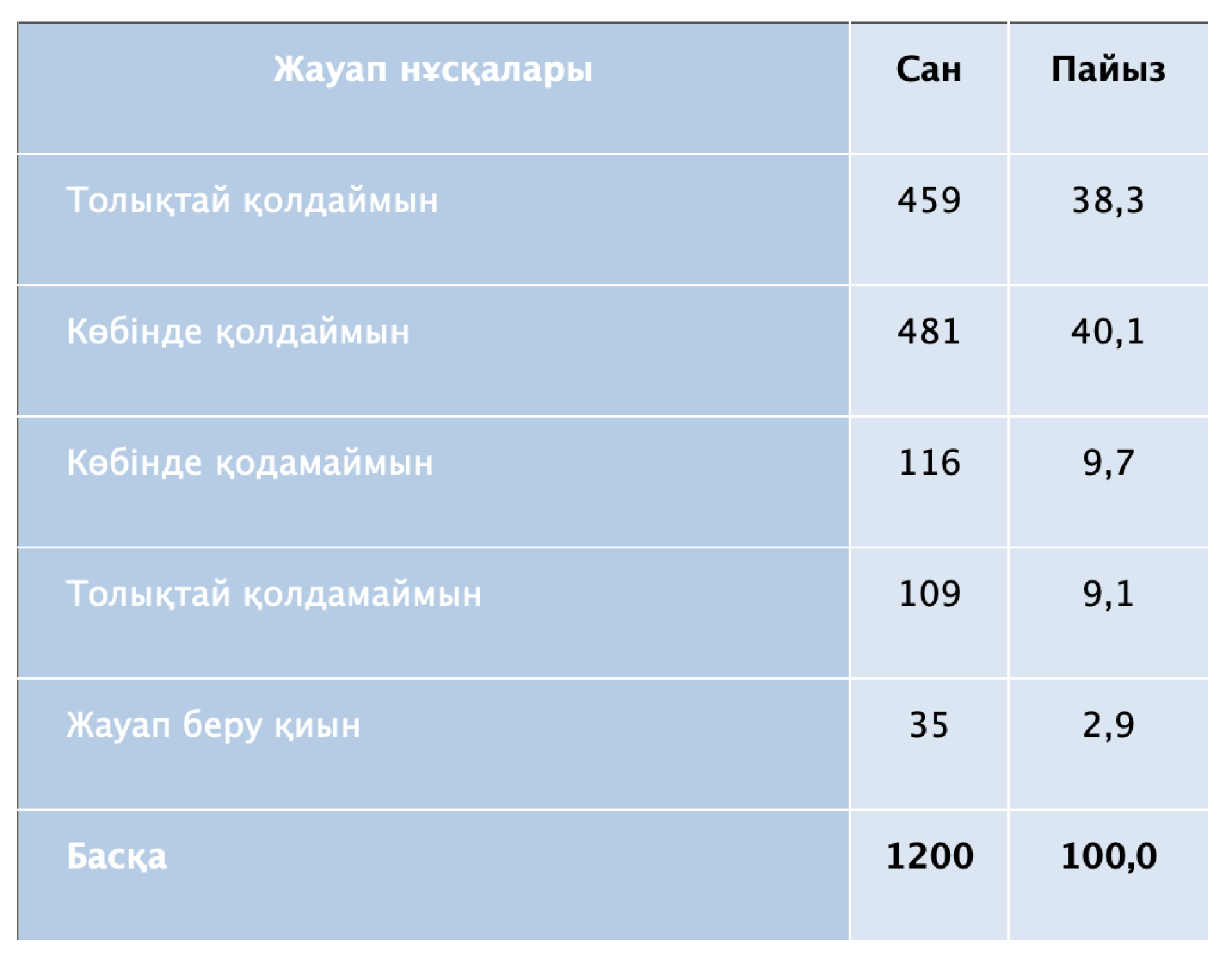 - демократияландыруды одан әрі тереңдету (9,3 пайыз) қажеттілігі анықталып отыр.