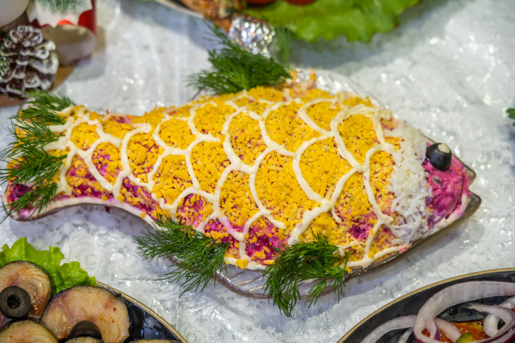 Ең танымал салаттар - оливье, "селедка под шубой", корей салаттары, теңіз қырыққабаты, "Гнездо глухаря" және караб салаты - кез келген аймақта жылдың кез келген уақытында сүйікті тағам. Тұздалған қияр да жыл бойы сұранысқа ие. Әсіресе тұздалған және ашытылған қырыққабат: классикалық немесе саңырауқұлақтар, дәмдеуіштермен.