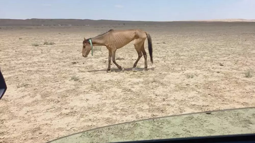 Еске салайық, Желіде Маңғыстау облысында аштан азып кеткен жылқылардың суреттері талқыланған болатын. Суреттерді Facebook қолданушысы Бердімұрат Төрекенов жариялады. Оның айтуынша, Маңғыстау облысындағы бірнеше ауылда жылқылар өлім аузында тұр. Төрекеновтың сөзінше, биыл далада жаңбыр жоқ, жайылымдар кеуіп кеткен, жем жетіспегеннен жылқыларға берер азық жоқ.
