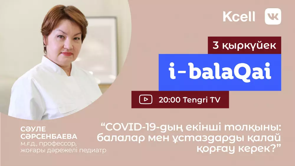 Жаңа шығарылымды бүгін, 3 қыркүйек сағат 20:00-де Tengri TV-дің YouTube-арнасынан көре аласыздар. Спикер "Балалар мен ұстаздарды вирустан қалай қорғау керек?" атты тақырыпта әңгіме өрбітеді.