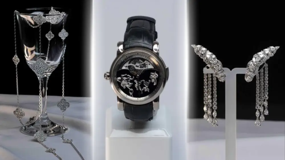 Олардың арасында Patek Philippe, Breguet, Franck Muller, Harry Winston, Bovet сағаттары, сондай-ақ Van Cleef & Arpels, DE BEERS, Yana Jewellery және басқа да зергерлік әшекейлер бар.