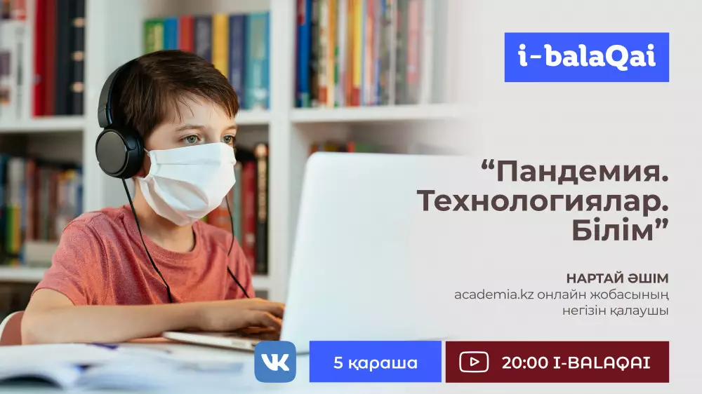 Бүгін, 5 қараша сағат 20:00-де I-BALAQAI YouTube-каналында көре аласыздар. Спикер "Пандемия. Технологиялар. Білім" атты тақырыпта ойын айтады. Сондай-ақ маман Bilimland платформасының жұмысы туралы айтып береді.