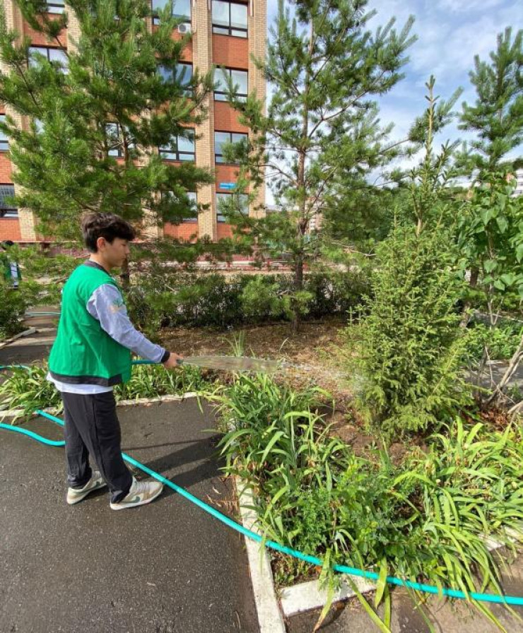 "Атадан мал қалғанша, тал қалсын" деген халық даналығын басшылыққа ала отырып, мектеп ұжымы мен оқушылар аула аумағын көркейтуге, табиғатпен үндестікте экологиялық тәрбиені нығайтуға ерекше мән беріп отыр. Әр сенбі сайын сенбілік өткізу дәстүрге айналған: оқушылар гүлдер мен ағаштарға күтім жасап, аумақты таза ұстауға белсене қатысып келеді", – дейді мектеп директоры Гүлжамал Пердебаевна.