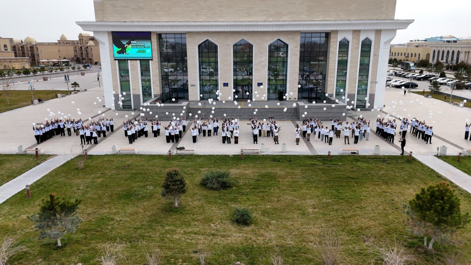 Муралдың ашылуына орай жастар өкілдерінің қатысуымен арнайы флешмоб ұйымдастырылды. Іс-шара барысында қатысушылар Конституциялық реформаны қолдайтын ұрандар айтып, көк аспанға референдум тақырыбындағы әуе шарларын ұшырды. Бұл символикалық әрекет – елдің жарқын болашағына деген сенім мен ортақ жауапкершіліктің белгісі болды.