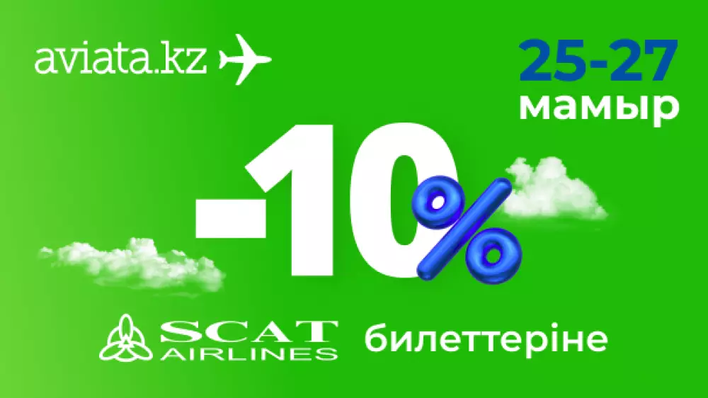 Тек Авиатадан SCAT билеттерін 10 пайыз жеңілдікпен сатып алуға болады. Науқан субсидияланған бағыттар мен балалар тарифтерінен басқа, 25-27 мамыр аралығында сатып алынған барлық SCAT әуебилетіне таратылады.