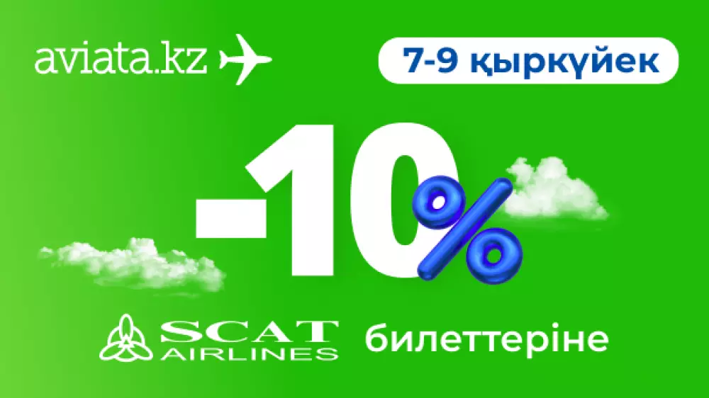 Тек Авиатада SCAT билеттерін -10 пайыз жеңілдікпен сатып алуға болады. Науқан SCAT компаниясының барлық бағытына жарамды. Жеңілдікпен сатылатын билеттерді субсидияланған бағыттарды* және балалар тарифін қоспағанда 7-9 қыркүйек аралығында алуға болады. Саяхат күндеріне шектеу жоқ.