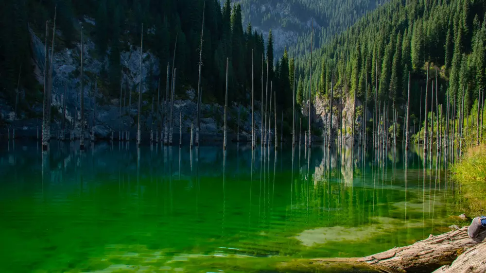 Ары қарай Қайыңды көлінің айналасындағы серуенмен жалғасады. Бұл жер бір кездері жер сілкінісінен кейін осы жерде болған қалың қарағайлы орманды су басудың нәтижесінде пайда болған деседі. Ағаштардың діңдері әлі күнге дейін судың арасынан шығып тұр. Өзен суының тұнықтығы соншалық, жағада тұрып-ақ су астындағы орманды көруге болады. Өзеннің тереңдігі - шамамен 15 метр.