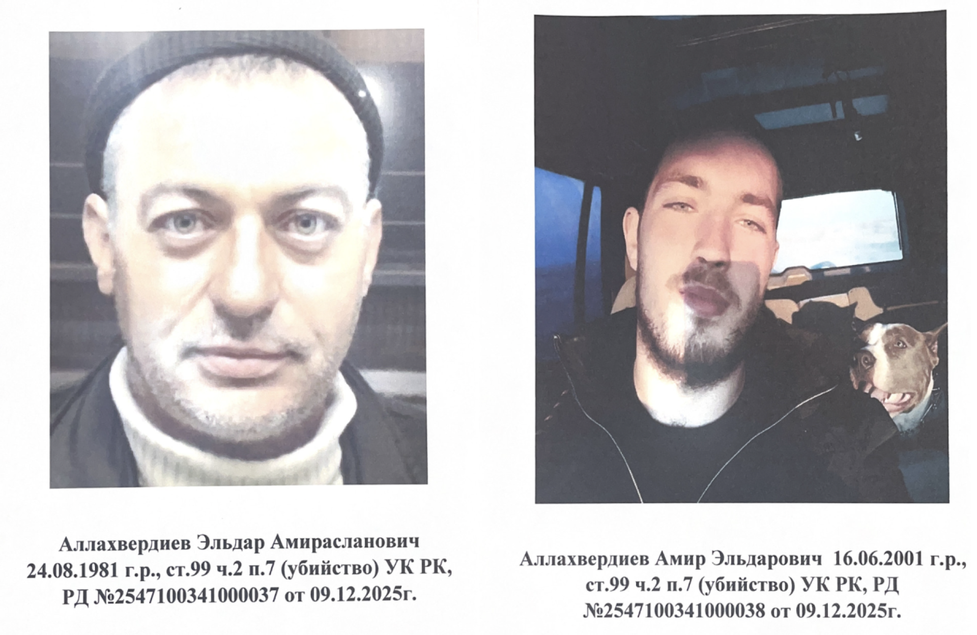 "Олардың орналасқан жерін анықтауға және ұстауға көмектесетін нақты ақпарат үшін жеке сыйақы жариялаймын – 2 000 000 теңге. Сыйақы кепілдендірілген. Заң шеңберінде анонимдік сақталады", – делінген үндеуде.