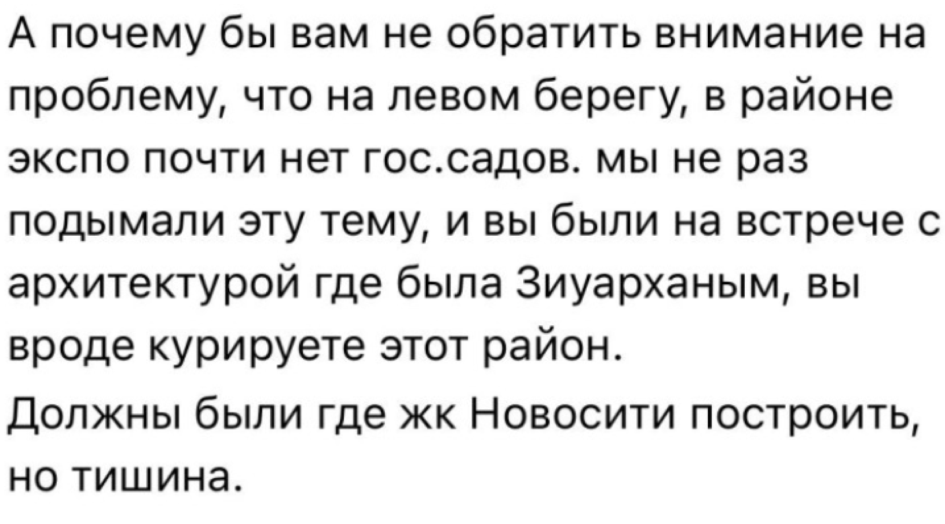 "EXPO маңында мемлекеттік балабақша жоқтың қасы. Бұл мәселені бірнеше рет көтердік – үнсіздік", – деп жазды желі қолданушысы.
