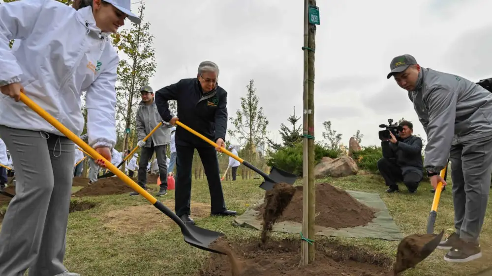 Президент Астанадағы Ботаникалық саябақта ерікті және белсенді жастармен бірге ағаш екті. Жалпыұлттық іс-шара аясында биыл республика аумағында 2,4 миллионға жуық көшет отырғызылған.