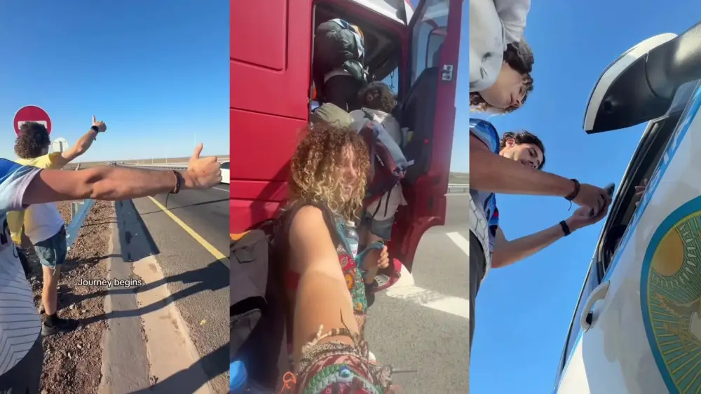 "Қане, Қазақстанда автостоппен саяхаттау қаншалықты жеңіл екенін көрейік. Полицейлер бізді жеткізіп салуды ұсынды – міне, олармен бірге кетіп барамыз! Полицейлер тек орысша және қазақша сөйлейді, ал біз тек ағылшынша", – дейді ол видеода.