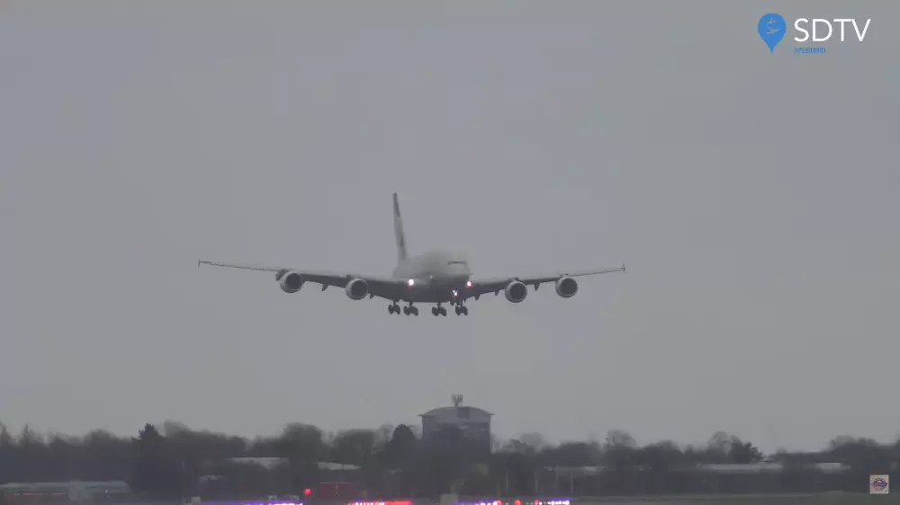 Etihad әуекомпаниясының Airbus A380 лайнерінің ұлыбританиялық Хитроу әуежайына қону сәтінде түсірілген видео SpeedbirdTV YouTube-каналында жарияланды. Онда ұшақтың қатты соққан желдің салдарынан жерден сәл биікте қалықтап, жолаққа көлденең қонғаны түсірілген. Видео сипаттамасында оқиғаның 15 ақпанда болғаны айтылады.