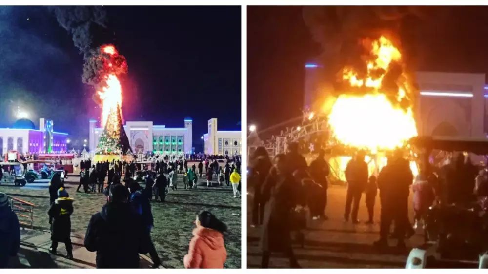Таразда алаңға орнатылған қаланың бас шыршасы өртеніп кетті, - деп хабарлайды Tengrinews.kz тілшісі.