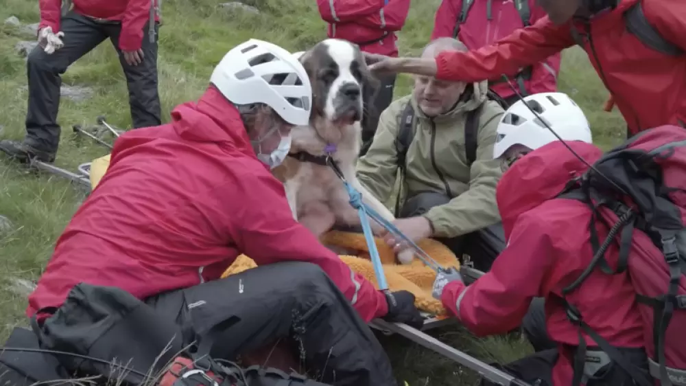 Скофелл-Пайк тауынан түскен кезде сенбернар итінің табаны ауырып, ол жүре алмаған. Құтқарушылар оқиға орнына шұғыл жетіп, итке ауырғанды сездірмейтін екпе салған. Кейін олар салмағы 55 келі болатын сенбернарды төменге түсіруге дайындықты бастапты.