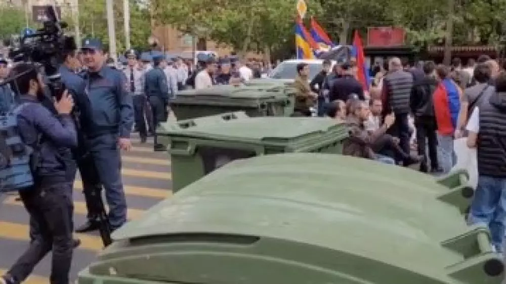 Ереванның орталығында наразылық білдірушілер жолды қоқыс жәшіктерімен жауып, шатырлар тіккен, полиция әлі араласқан жоқ, - деп хабарлайды РИА Новости.